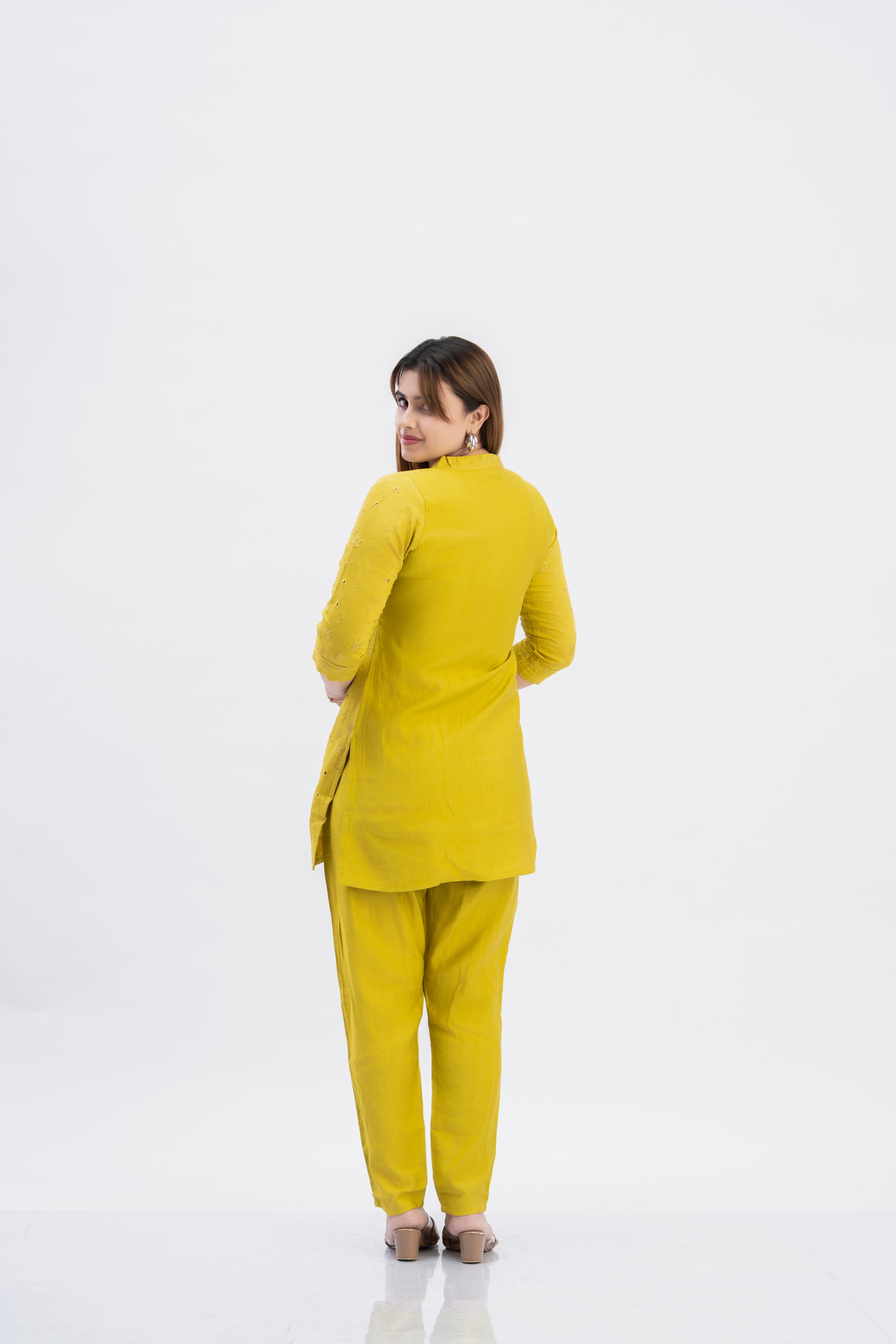 Women’s Mustard Yellow Schiffli Embroidered Kurti Pant Set