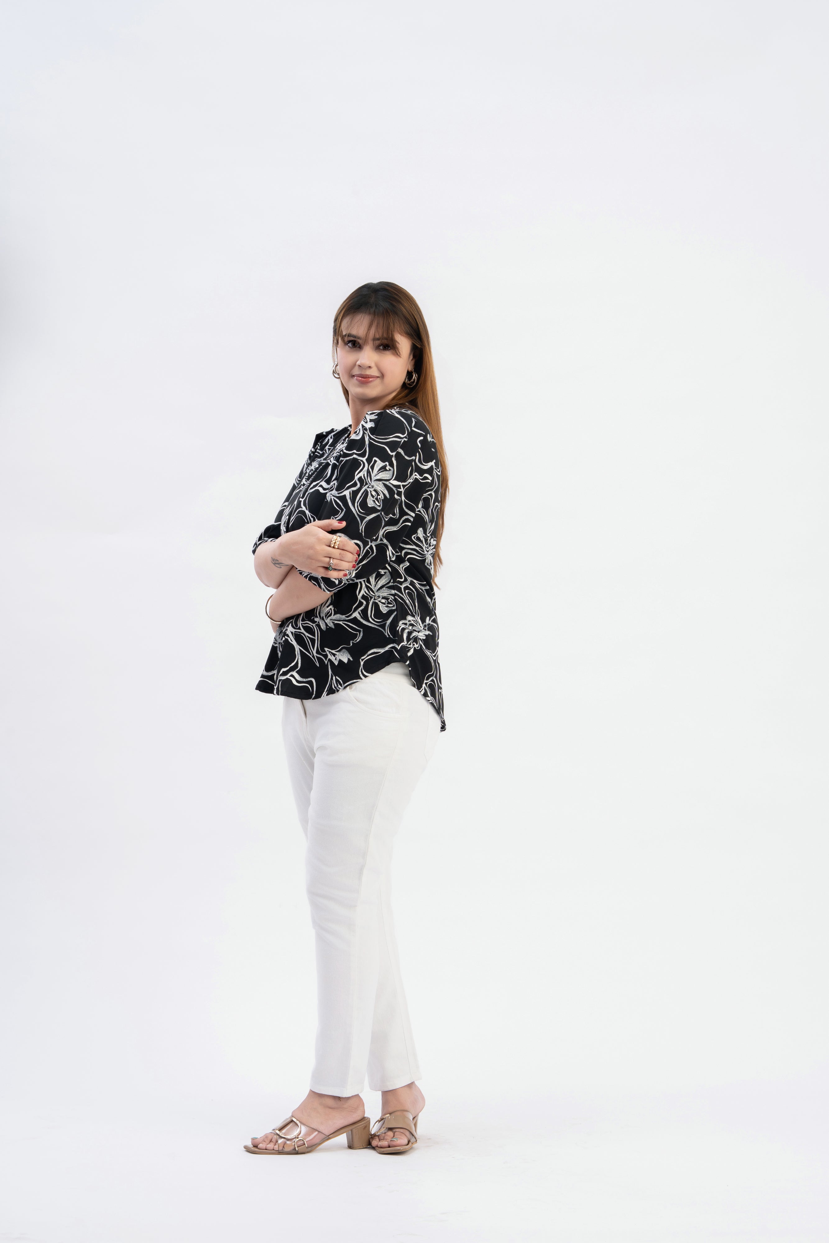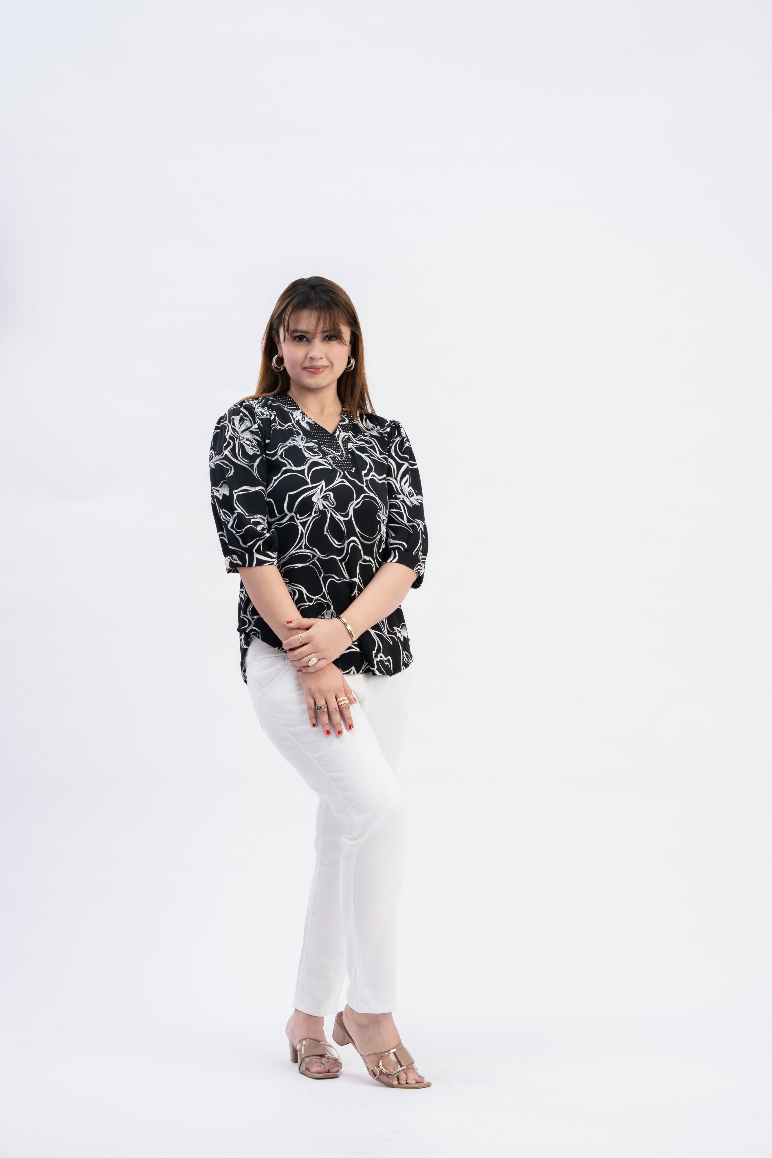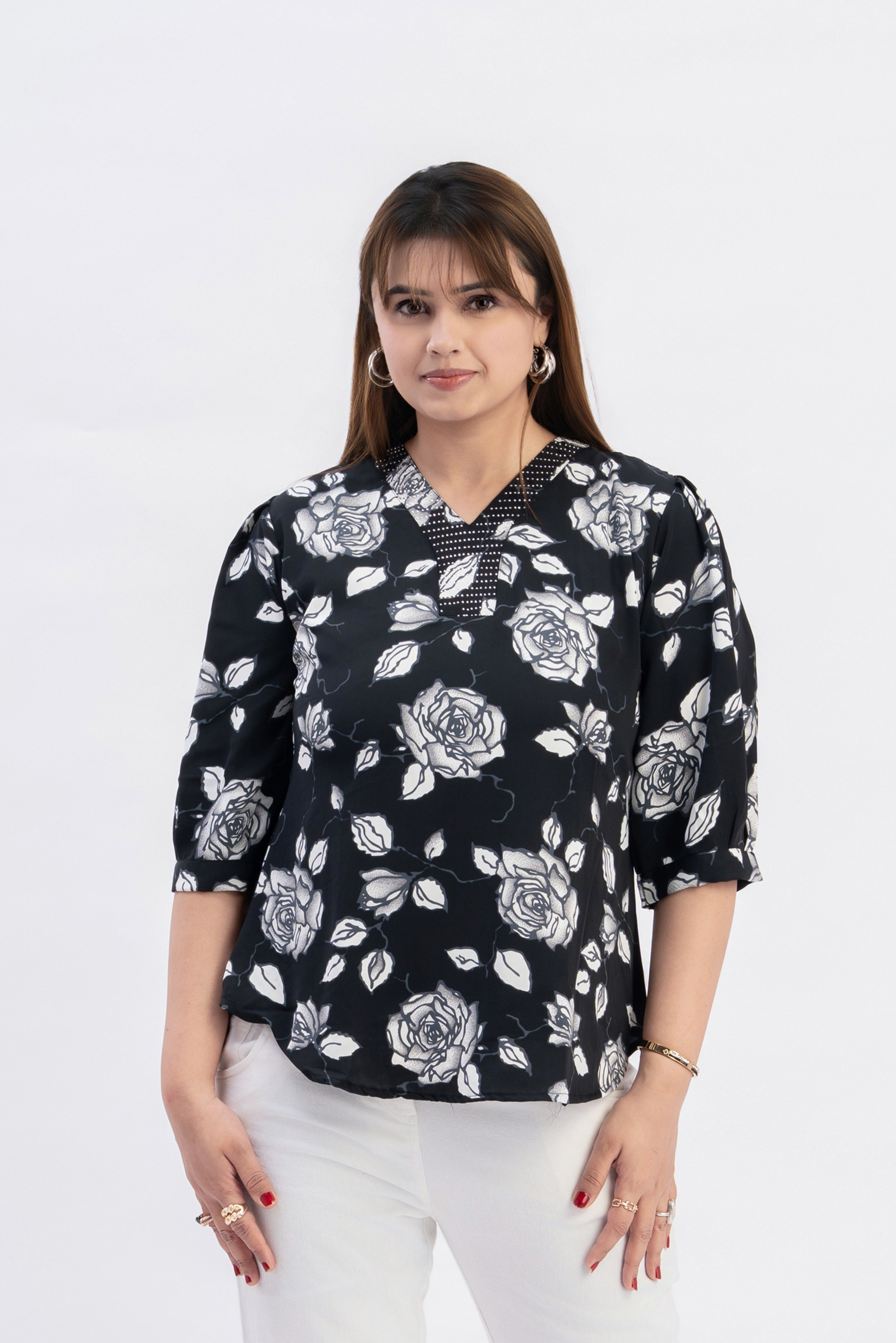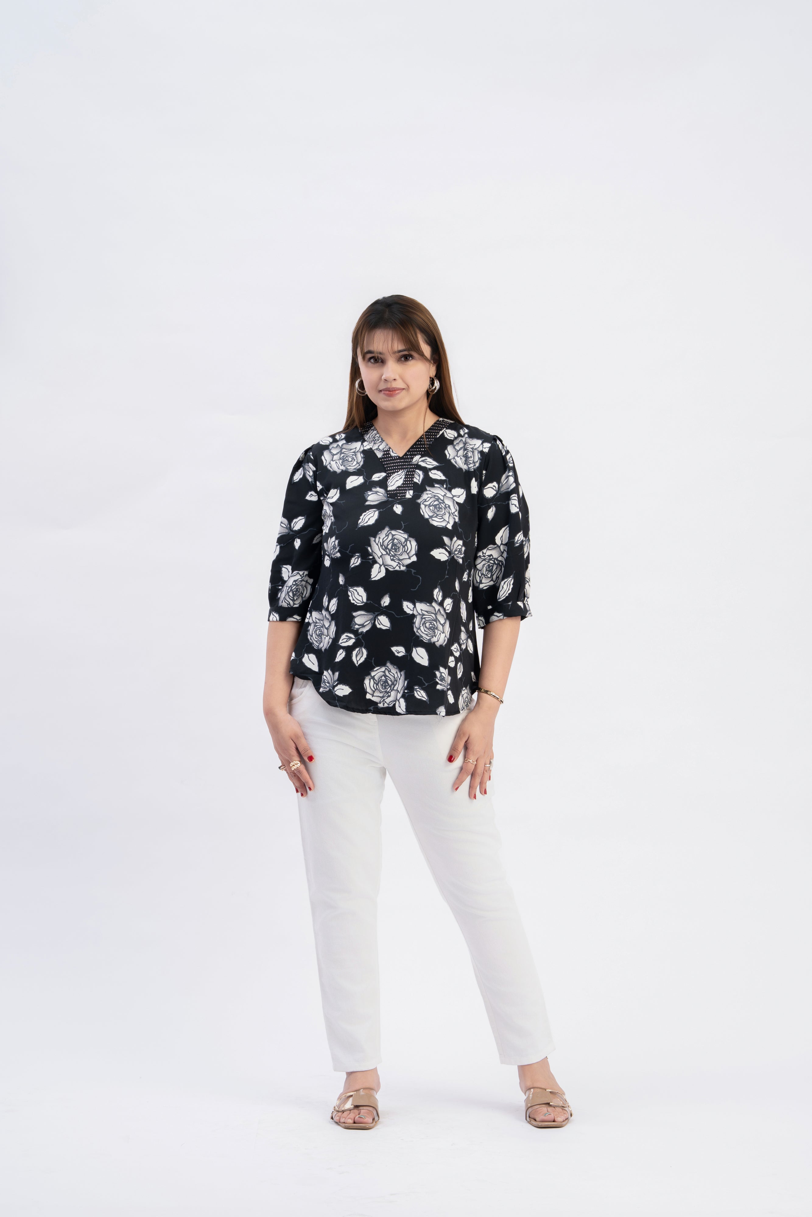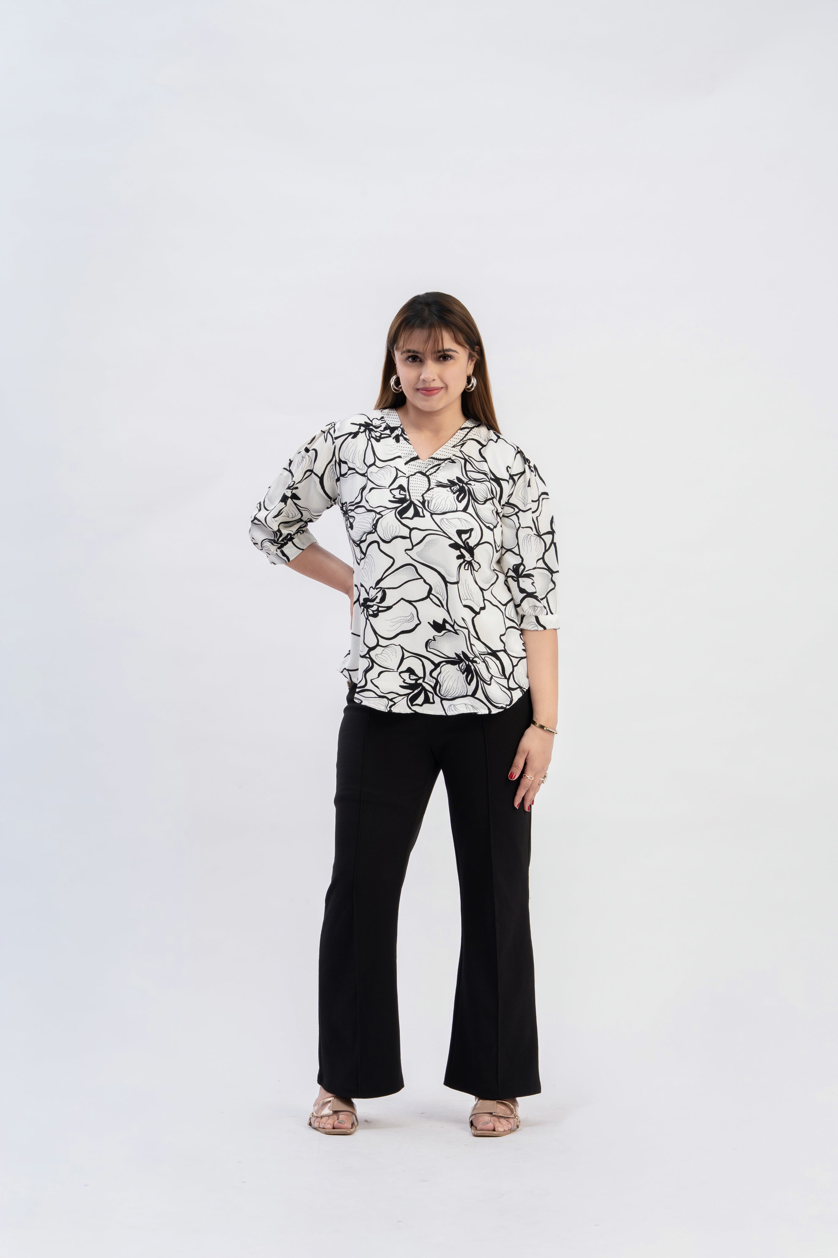 Women’s Printed V-Neck 3/4th Sleeve Casual Top
