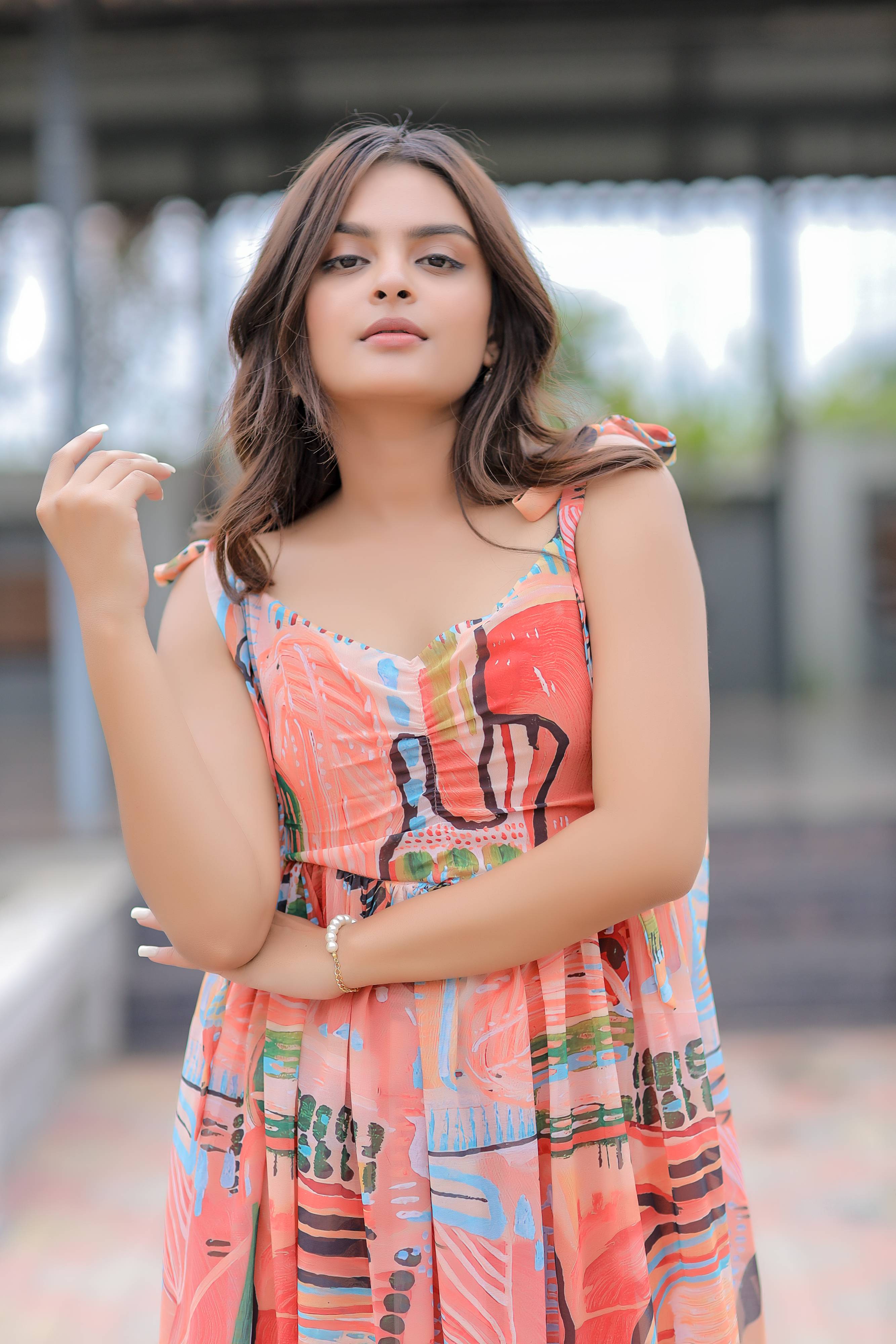 Multicolor Printed Georgette Maxi Dress
